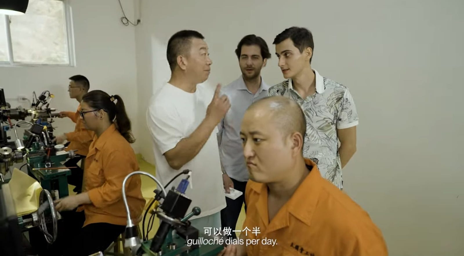 It turns out, three apprentices are actually required, operating the guilloché tool in a kind of Olympic relay session back-to-back for 12 hour (!) 8-8 shifts. They added, that this is alongside Master Cheng, but his exact role is not made clear. Apparently the tool used will lose it’s setting after ~15 minutes, which necessitates this approach.