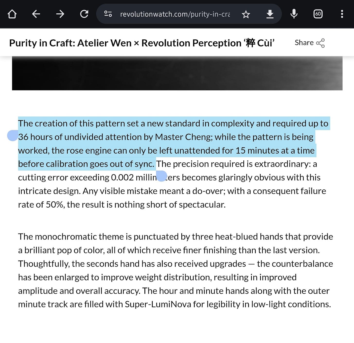 Initial claims by Revolution mentioned that Master Cheng himself created the dial for the new Revolution Perception, using a traditional rose engine lathe. Below are some screenshots from the Revolution website, clearly mentioning a Rose Engine as well as Master Cheng being the one creating these dials by himself: