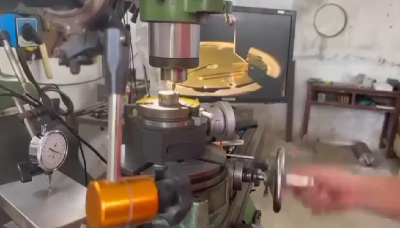 This essentially functions like a manually controlled CNC machine, but instead of a computer making hundreds to thousands of super accurate small adjustments over multiple cuts per line, it is all done manually. One of my childhood heroes, MacGyver, would be proud of Cheng rigging up this manual CNC from parts he gathered or machined himself!
