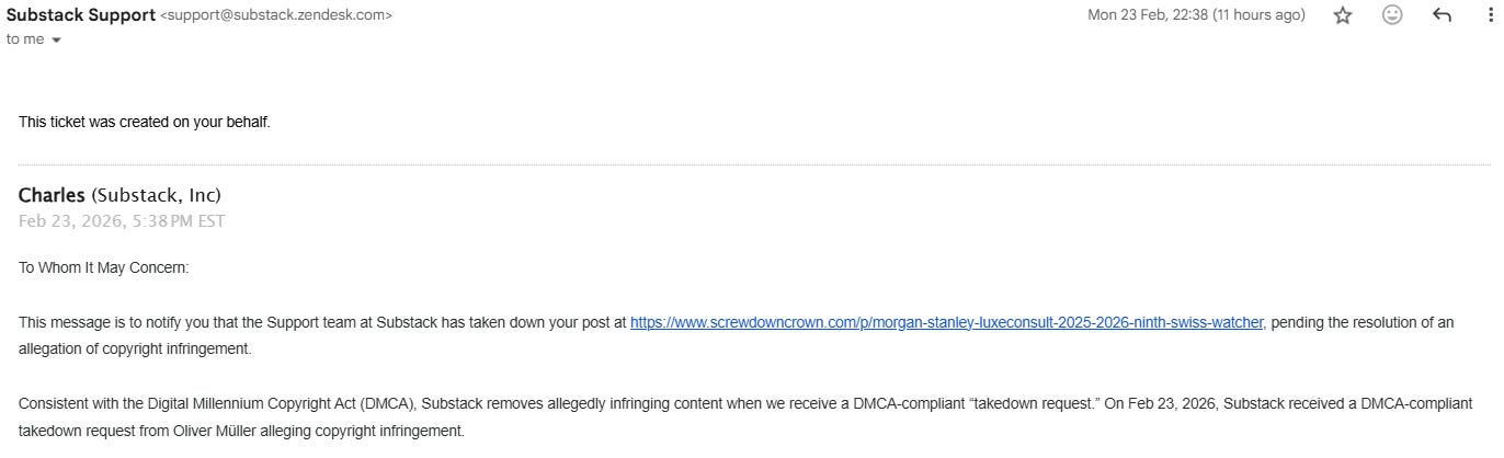 Going forward, I will no longer be covering or recommending the Morgan Stanley / LuxeConsult Swiss Watcher reports on SDC. Oliver is of course well within his rights to control how his work is distributed, and I am entirely within mine to decide that life is too short to deal with pedants. He can enjoy his fictions in peace, and I wish him well with that.