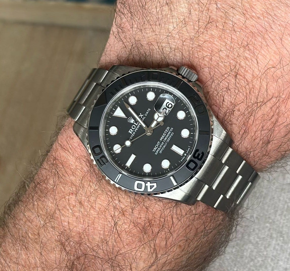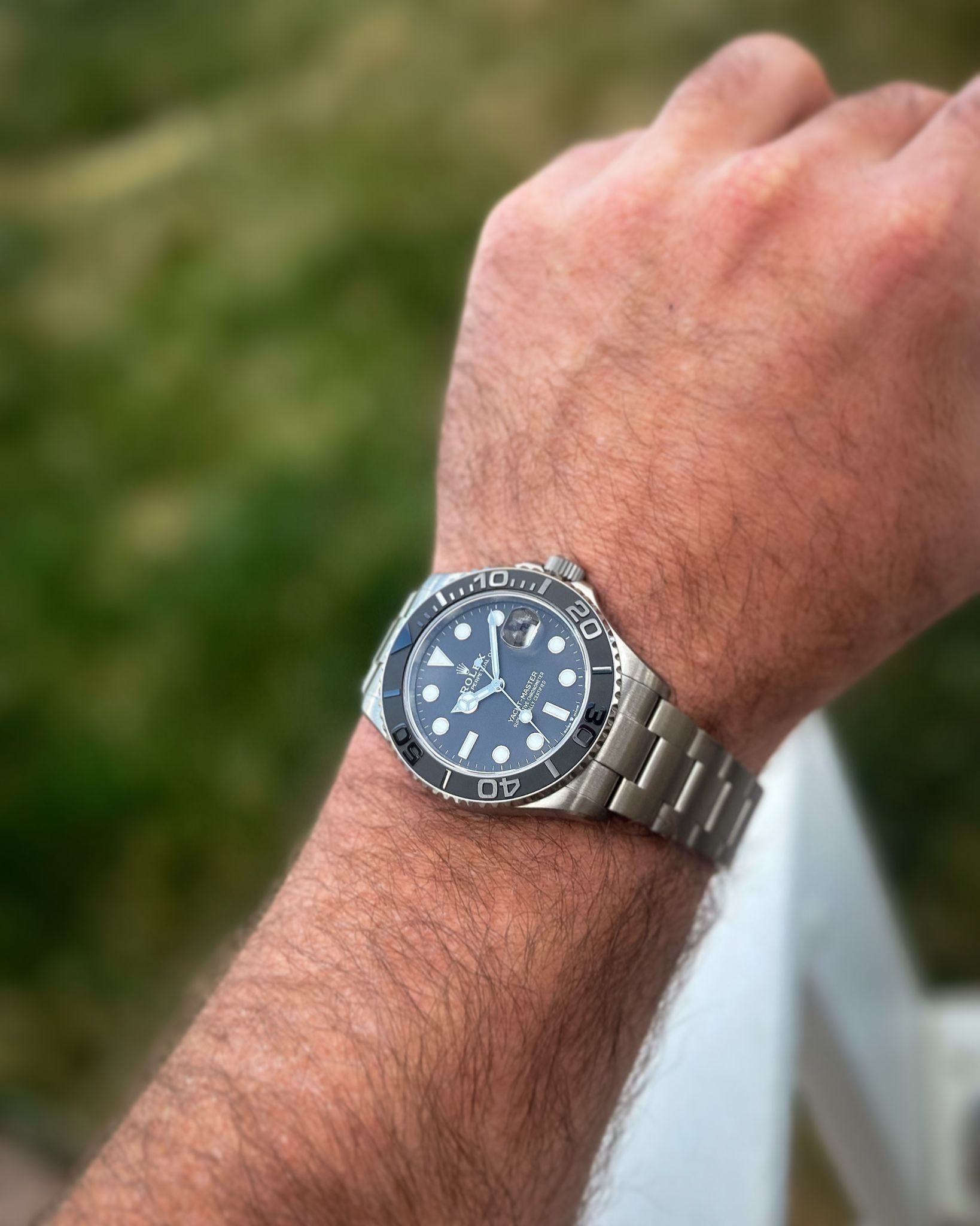 After two full years of peppering my AD with quarterly and hopefully humorous “dibs reminders,” Watches & Wonders 2023 officially unveiled the Titanium Yacht-Master 42 on full Oyster bracelet. I can only imagine the onslaught of texts the Rolex SAs received that fateful day, but my message remained consistent, “Reminder of pre-existing dibs.”