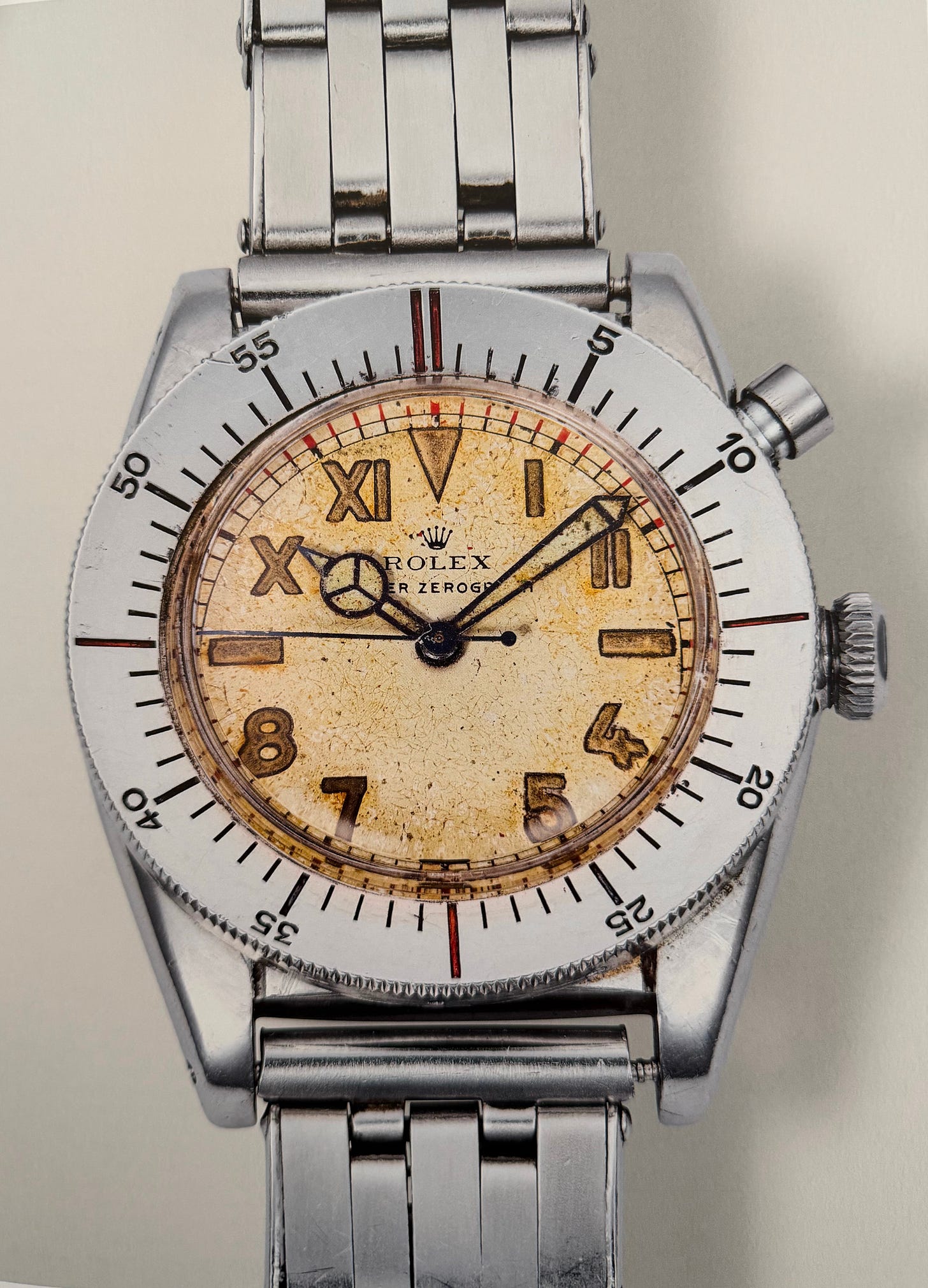 “The most spectacular dead-end from Rolex; their first in-house chronograph movement and their first watch with a rotating timing bezel, yet it went absolutely nowhere. One of the great “might have been” watches.”