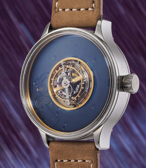 That’s what someone paid for an Ondřej Berkus “Minion 2” at Phillips in New York last week. It was a stainless steel regulator tourbillon with a titanium cage and Grand Feu enamel dials. The estimate was $30,000 to $60,000, so the final hammer came in at more than double the high estimate, and more than double the original price, too.
