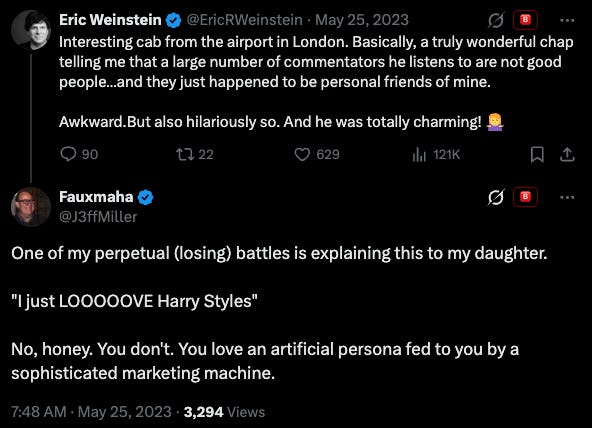 Let me take a bite of the juiciest part of the steak first: Kevin O’Leary. When contemplating the perception of a public figure, I often think of this tweet and reply and its commentary on the public’s perception of celebrities whom they have never met.
