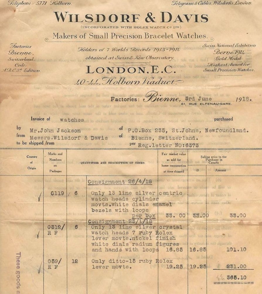 The business model was simple; they’d import high-quality Swiss movements and cases, assemble them in London, and sell the finished watches to retailers across Britain. At the time, most watches did not have the manufacturer’s name on the dial - retailers would place their own name on the dial and take credit for the product. This arrangement annoyed young Wilsdorf because he believed his watches deserved their own identity.